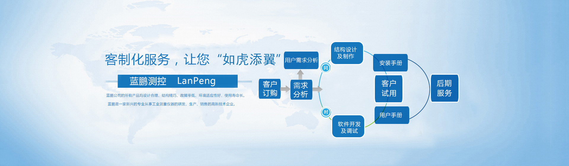 藍鵬以雄厚的技術力量為基礎,以自研的傳感器技術為依托,專業(yè)承接各種非標準測量儀器。歡迎有測量問題的企業(yè)向我們咨詢各種類型的測量問題。我們將為您提供完善的解決方案。